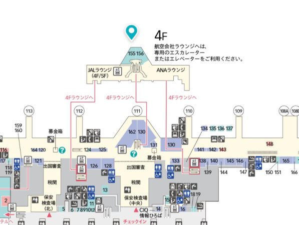 TIATラウンジは、第3ターミナルの出国審査後すぐの中央エリア4階にあり、アクセス抜群。